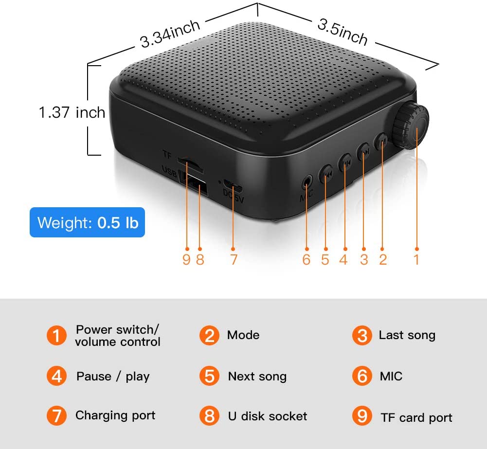 Amplificador de voz Aporo 12W Micrófono c/cable