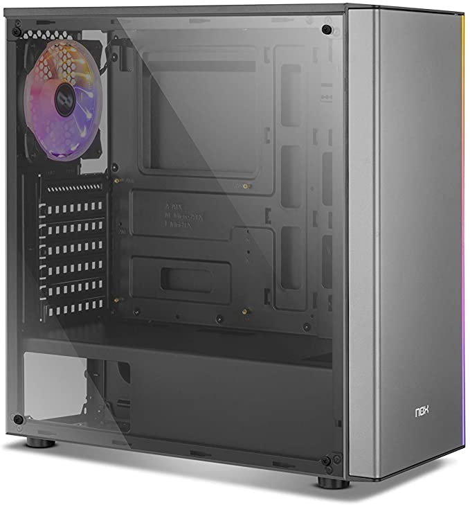 En consonancia con la serie Infinity llega esta semitorre de aspecto sobrio y minimalista con detalles y acabados que la dotan de una fuerte personalidad. Un elegante diseño compuesto de un panel frontal de acero delimitado en su lateral derecho por un discreto LED ARGB y un panel lateral acrílico que permite ver toda nuestra configuración.